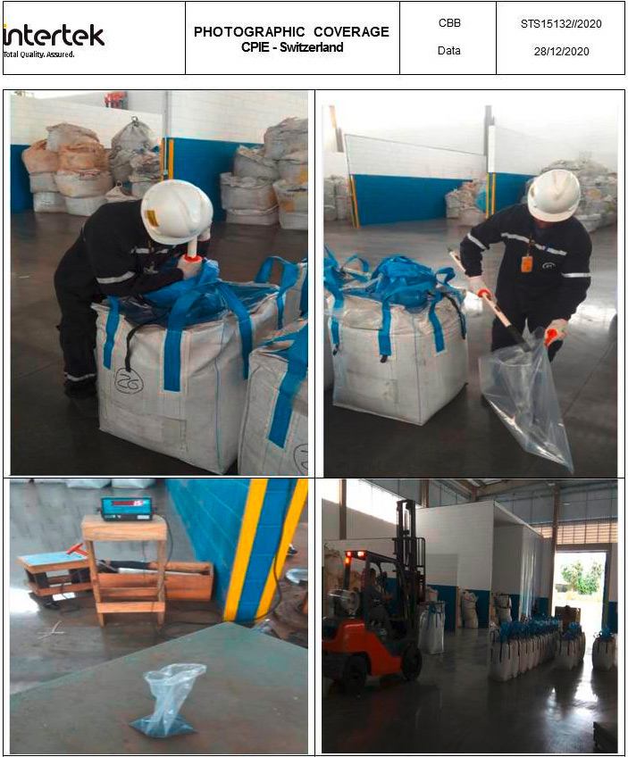 At port arrival, the same controller will ensure that the big bags are still sealed and that the quantity concords with the ordered quantity. Before up loading on board, a final test is conducted as to check again all criteria above mentioned and the bag or bulks are sealed again ready for shipping.